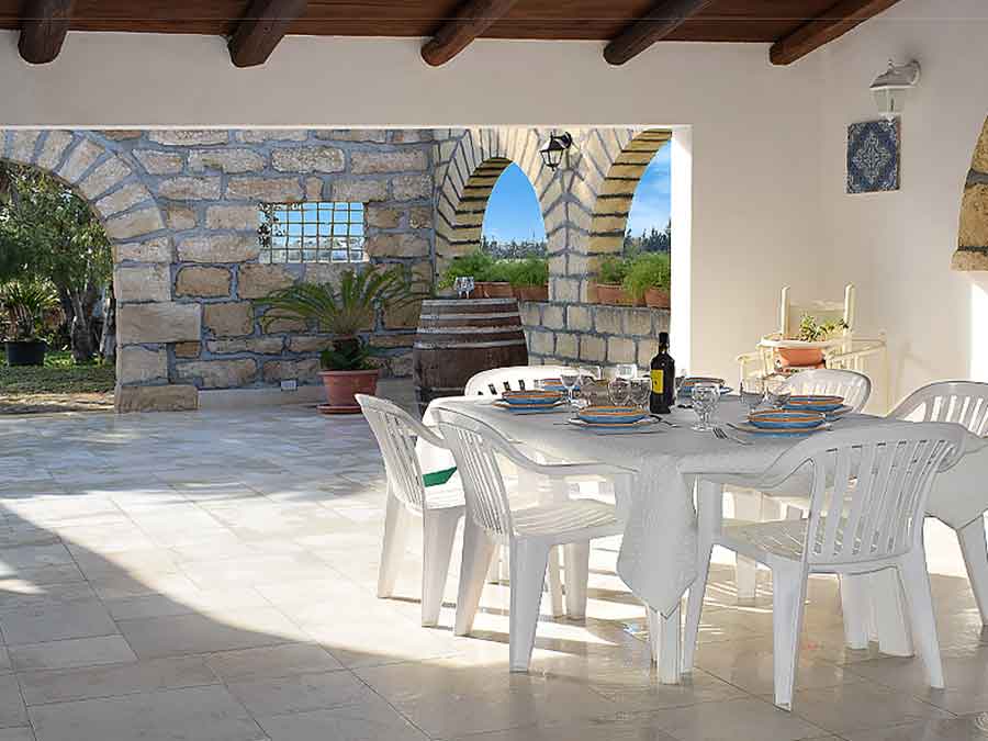 Vakantiewoning met veranda in een typische baglio op het platteland van Balestrate op een paar minuten rijden van het zandstrand en het centrum van het kustplaatsje.
